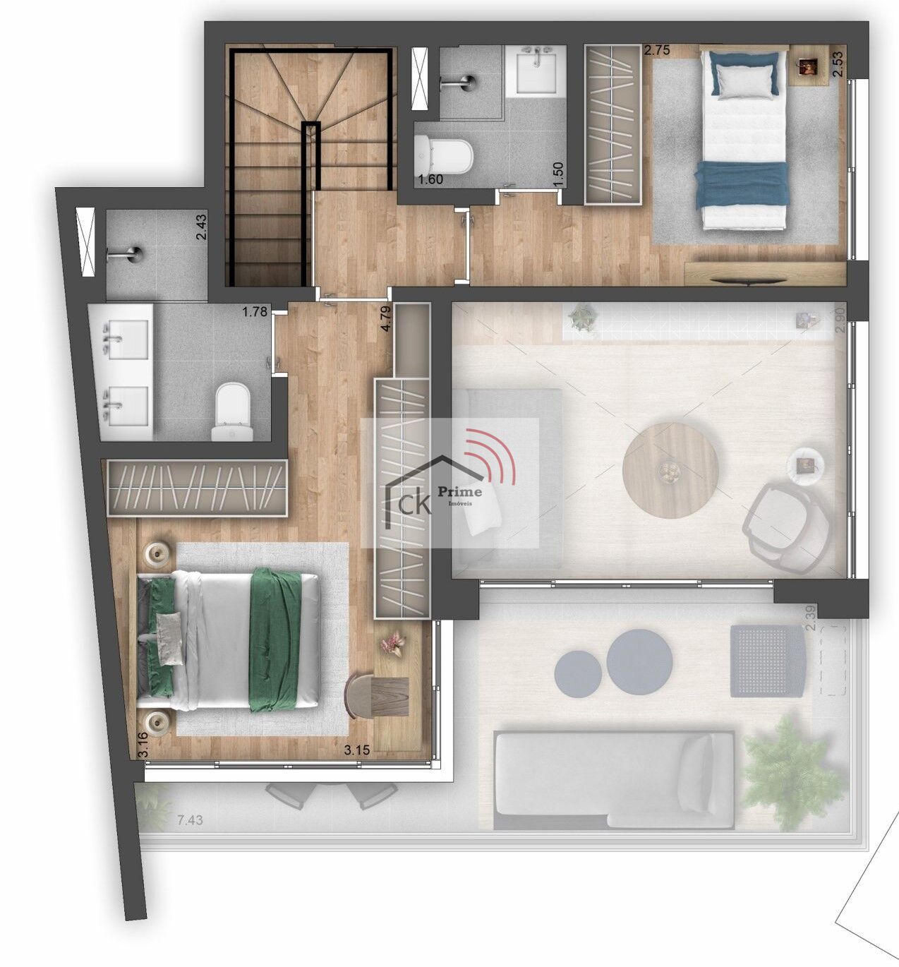 2 Dormitórios, sendo 2 suítesÁrea Privativa