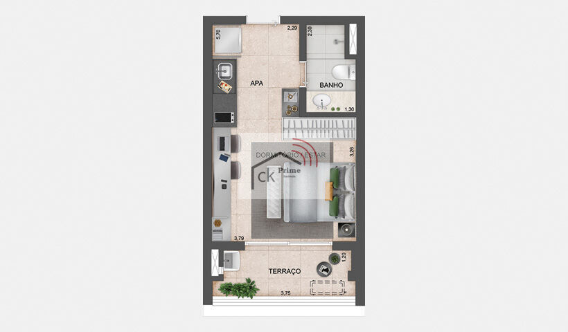 1 DormitórioÁrea Privativa
